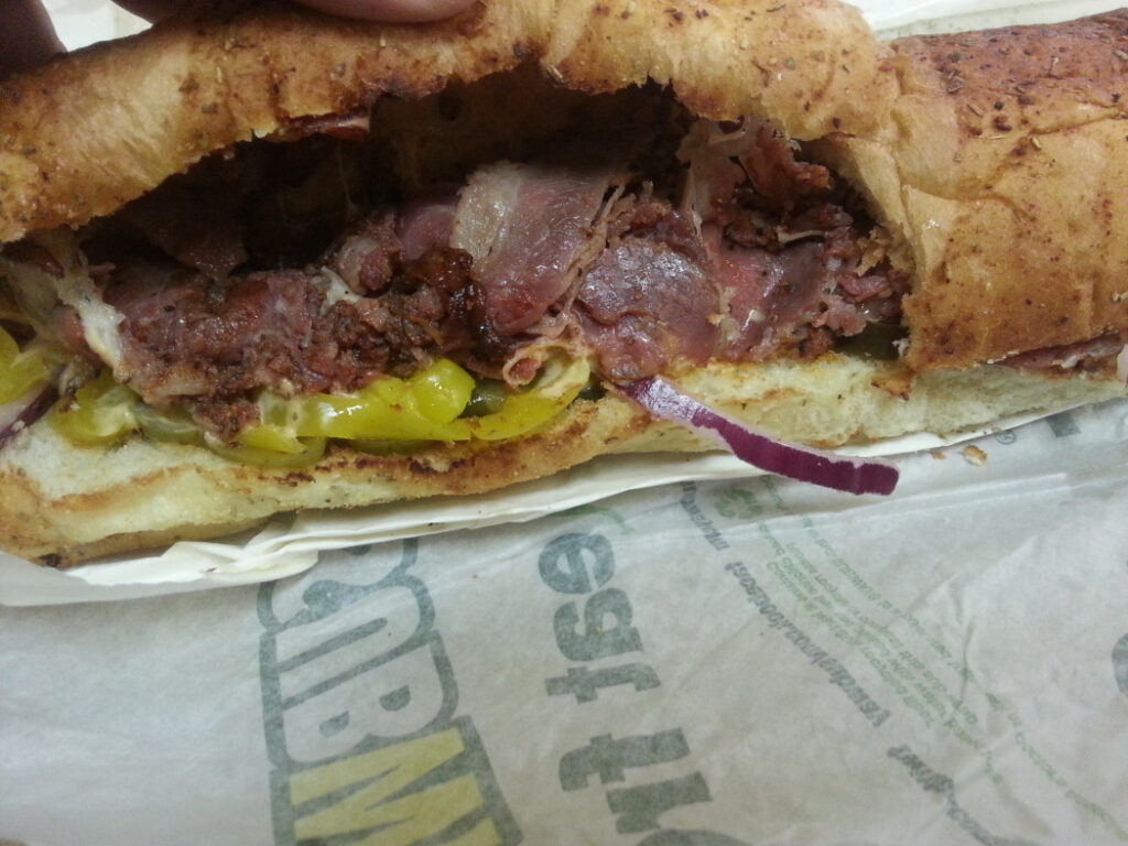 Na koniec jeszcze ciekawostka. Będąc w USA w 2014 roku jadłem w tamtejszym Subwayu sandwicha Big Hot Pastrami. Kosztował wówczas 6.39$ za wersję footlong, do mięsa (którego było naprawdę dużo) dobrałem sobie piklowe jalapeno, pepper bell, czyli słodką paprykę, czerwoną cebulę , ser pepper jack i ostry sos. Pojadłem i to z przyjemnością.