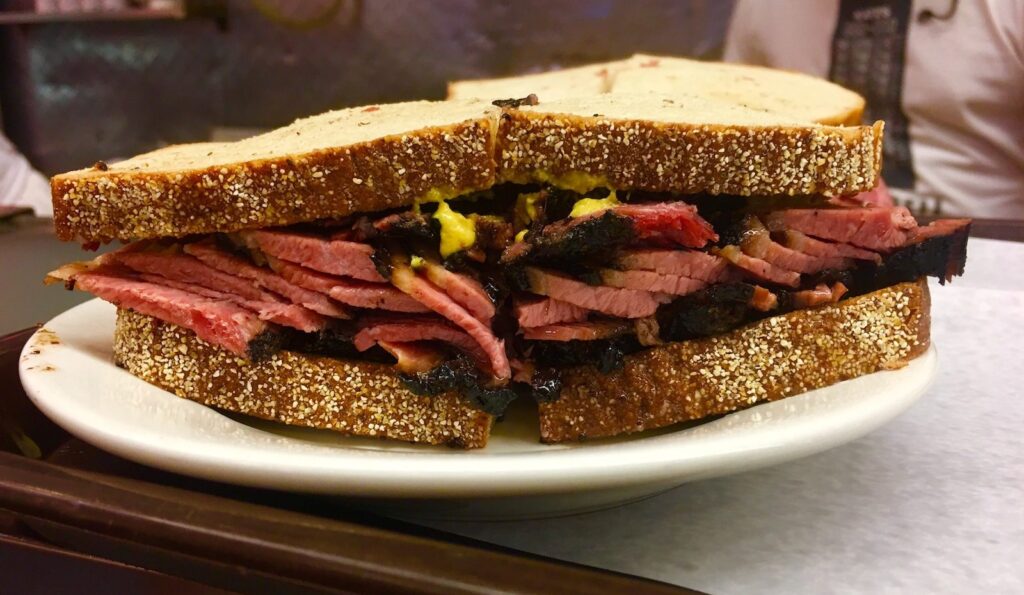 Smakołyk, z którego słynie Nowy Jork to kanapka z pastrami. Jak możemy przeczytać na stronie krakowskiego Pastrami Deli, słowo pastrami w języku angielskim najprawdopodobniej dotarło do Stanów Zjednoczonych wraz z falą żydowskiej imigracji z terenów dzisiejszej Rumunii i Besarabii w drugiej połowie XIX wieku. Rumuńscy Żydzi, którzy przybyli do Nowego Jorku w tamtym czasie, robili pastrami z piersi gęsich, które były dość tanie. Mostek wołowy okazał się jednak tańszy i z czasem niedroga wołowina zastąpiła gęsinę w procesie przygotowywania pastrami. W 1887 roku, pewien nowojorski rzeźnik, litewski imigrant, zaserwował pierwszą kanapkę pastrami w swojej rzeźni. Kanapka stała się tak popularna, iż przedsiębiorca zamienił rzeźnię w restaurację i zaczął sprzedawać sandwicze z pastrami.