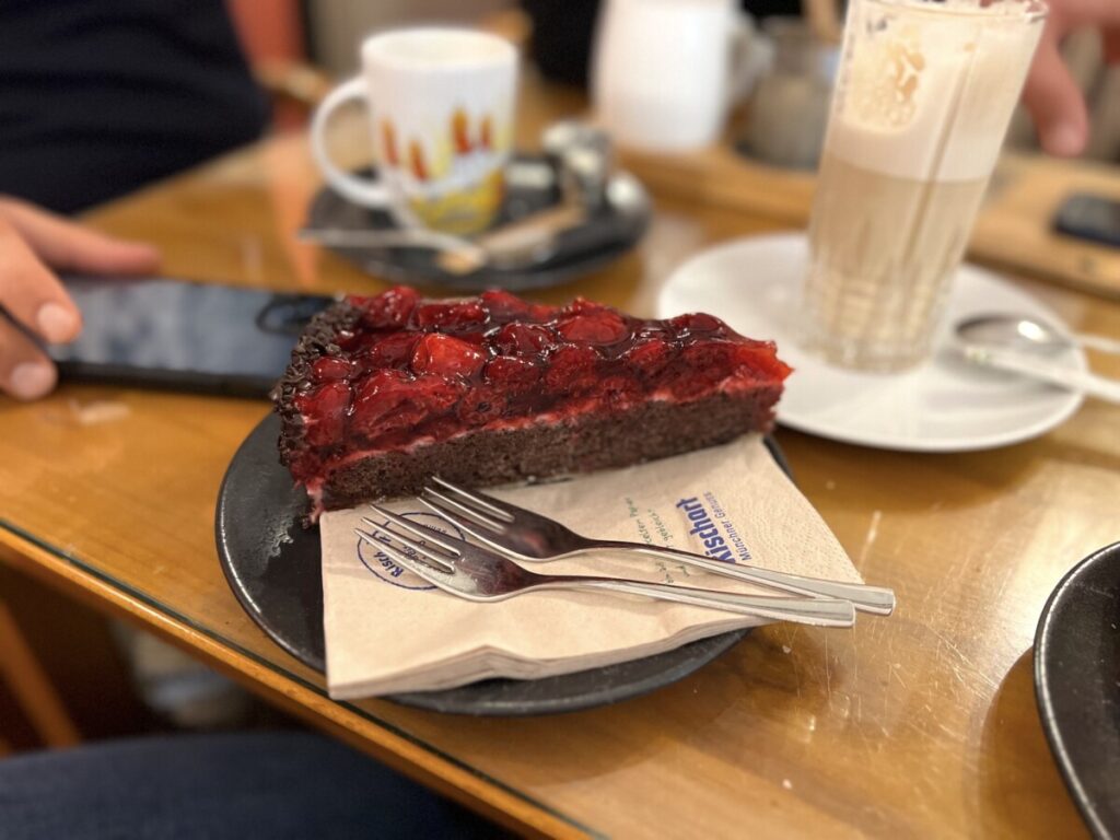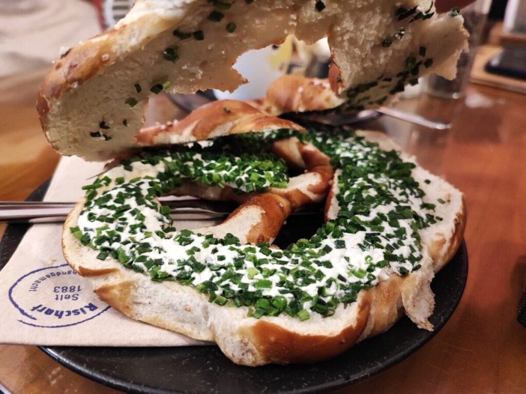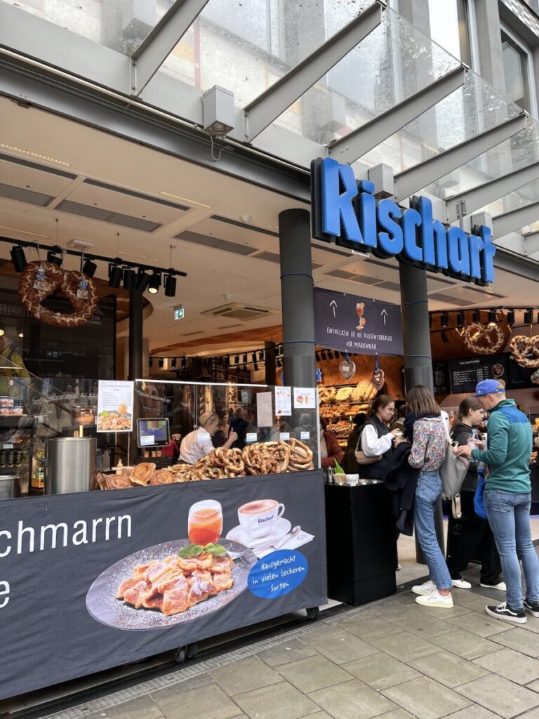 Rischart to niemiecka sieciówka. Trochę przypomina mi nasze piekarnio-kawiarnie, chociażby takie jak Pod Telegrafem. Można podejść i wziąć coś do jedzenia na wynos, ale można także zamówić i zjeść przy stoliku.