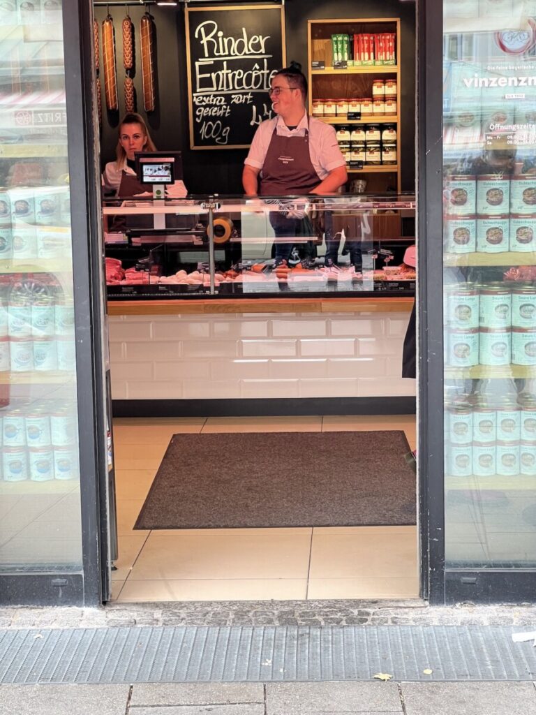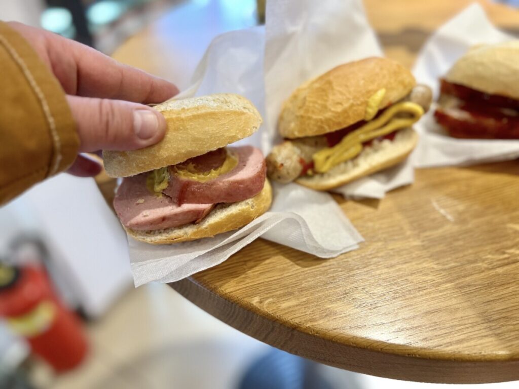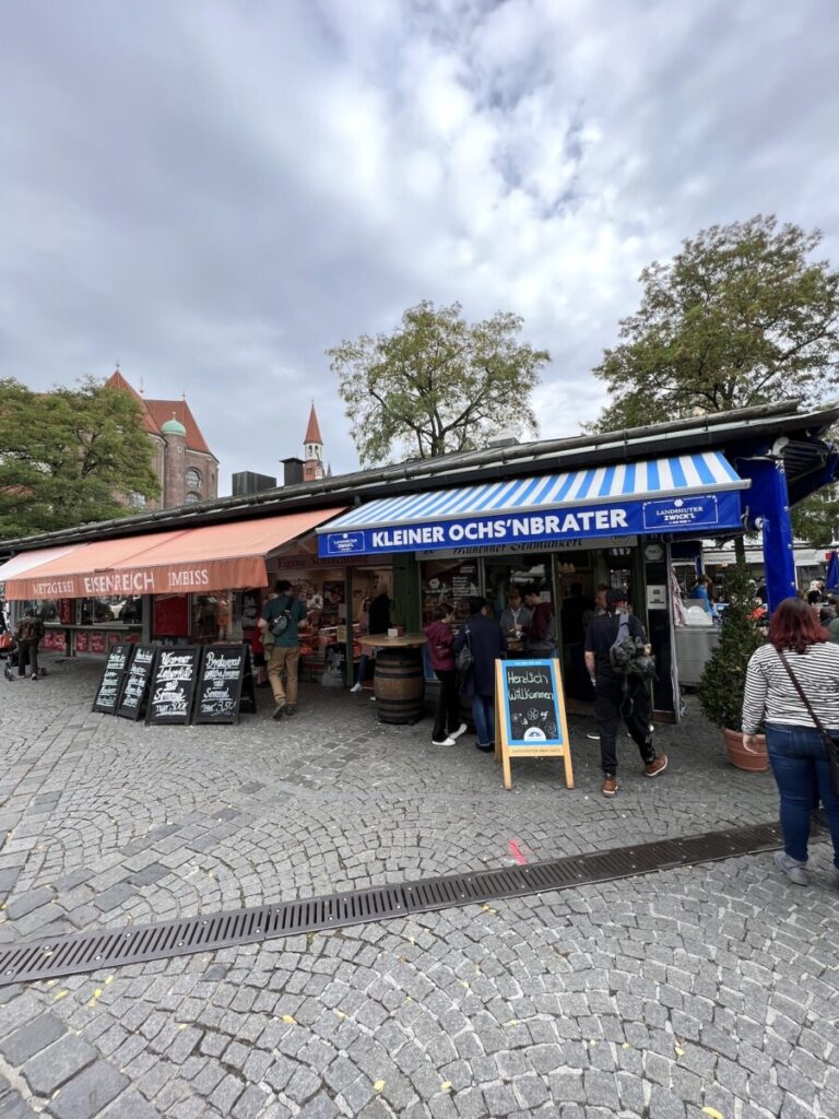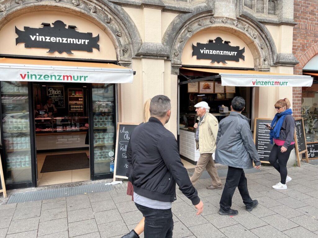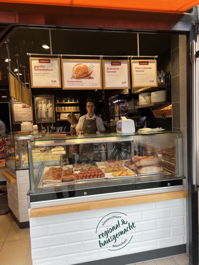 Oczywistym więc było, że spróbowałem jej także na Viktualienmarkt. obeszliśmy kilkanaście stoisk, by w końcu wybrać Vincenzmurr. Przed wojną w Polsce wiele sklepów rzeźniczych miało zwyczaj udostępniania swoim klientom miejsca na spożycie na miejscu wybranych produktów zakupionych w sklepie, np. kiełbas lub serdelków. I tak właśnie działa Vincenzmurr. Można tu zrobić mięsne zakupy, ale także na miejscu zjeść. Dla mnie bomba!