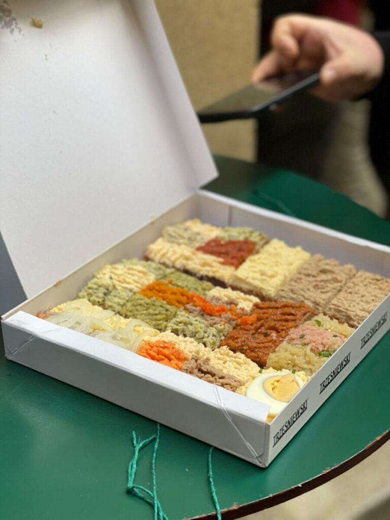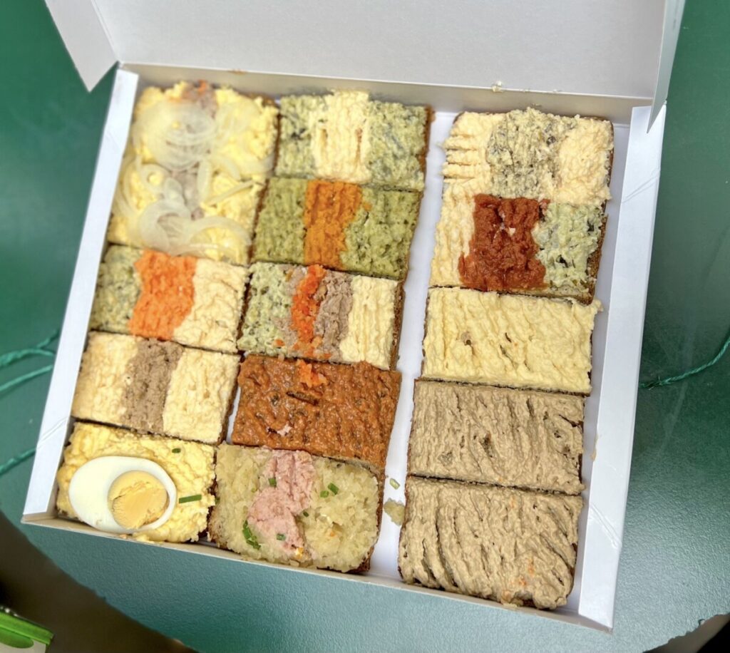 Wybór kanapek przyprawia na początku o zawrót głowy. Można wziąć jedną, można zestaw. My wzięliśmy 15 różnych, bo tyle akurat mieści się w pudełku.