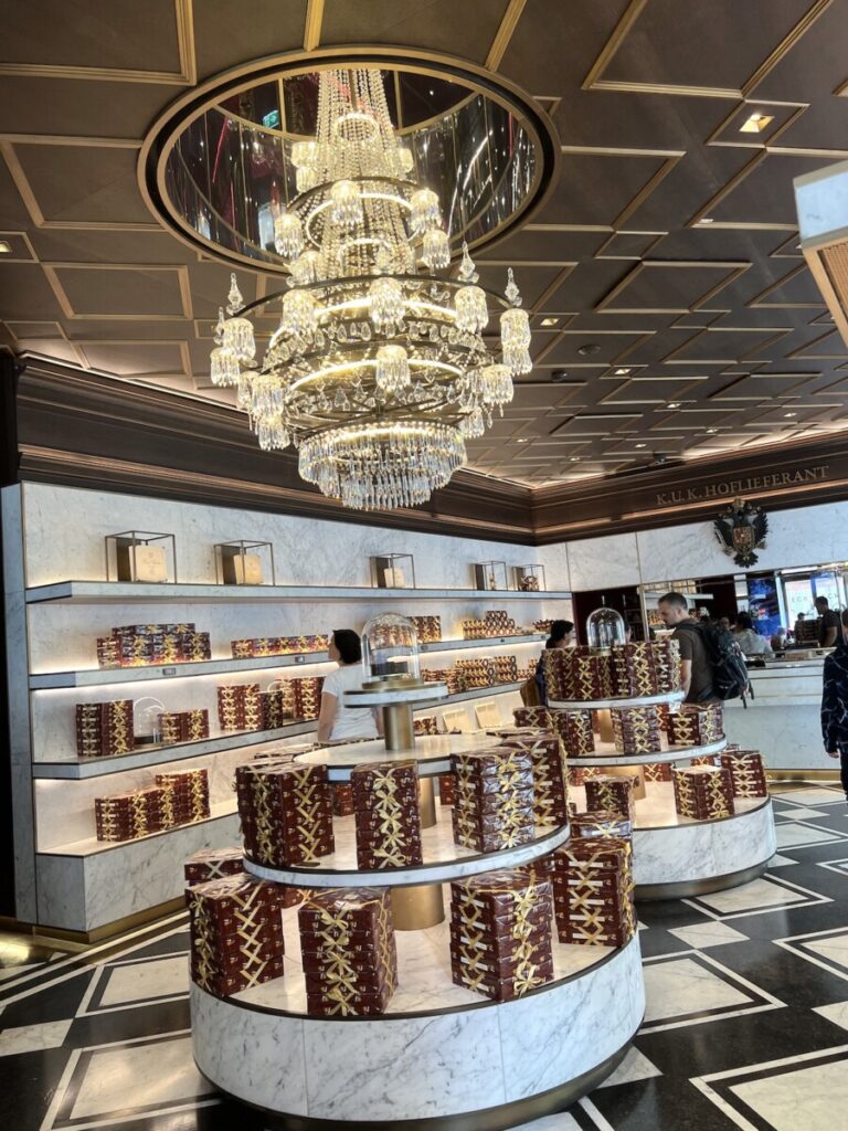 Czekoladowy tort smaczny, jedzony w takim miejscu smakuje szczególnie dobrze, a przy kawiarni znajduje się sklep, więc można sobie zabrać również na wynos. Aczkolwiek jeśli mam być szczery, to dużo bardziej smakował mi podany na gorąco strudel jabłkowy. Po wydłubaniu rodzynek zajadałem, aż mi się uszy trzęsły. Niemniej uważam, że tortu Sachera wypada spróbować będąc w Wiedniu. W końcu to kawał gastronomicznej historii tego miasta. Jeśli chcecie poczuć kawiarnianą atmosferę Wiednia, zjeść dobre ciacho i wypić dobrą kawę, zarezerwujcie sobie stolik w Cafe Sacher.